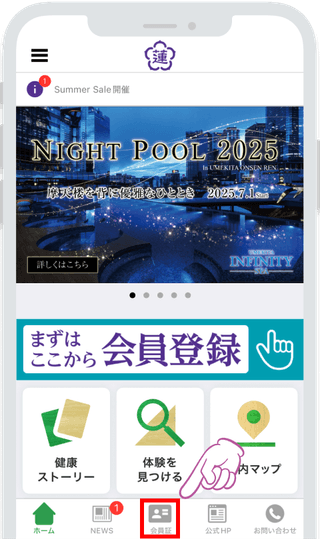 アプリ内のNEWSやPUSH通知で、 特典や割引などのお得な情報や 季節のイベント情報をご案内します。 おすすめ情報をお届けします。