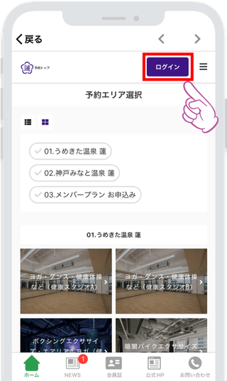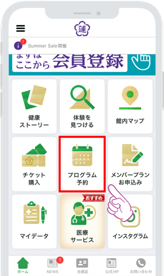 アクション2. アプリの「プログラム予約」ページからログイン登録